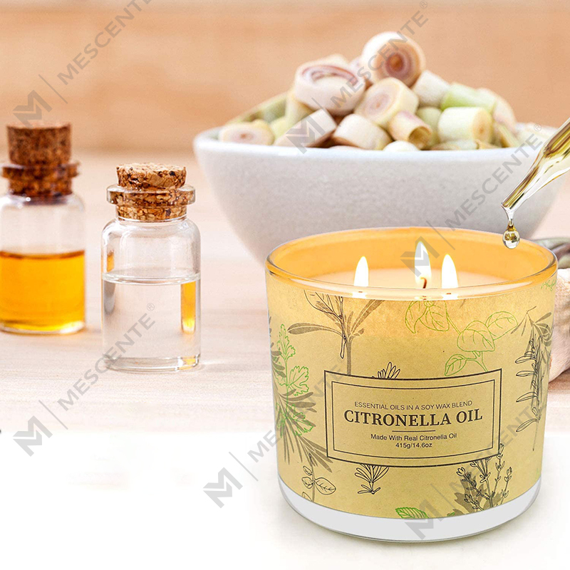 Juegos de velas de aceite de citronela con aromaterapia perfumada de 3 frascos de mecha de larga duración para el hogar, el jardín, el patio y el balcón