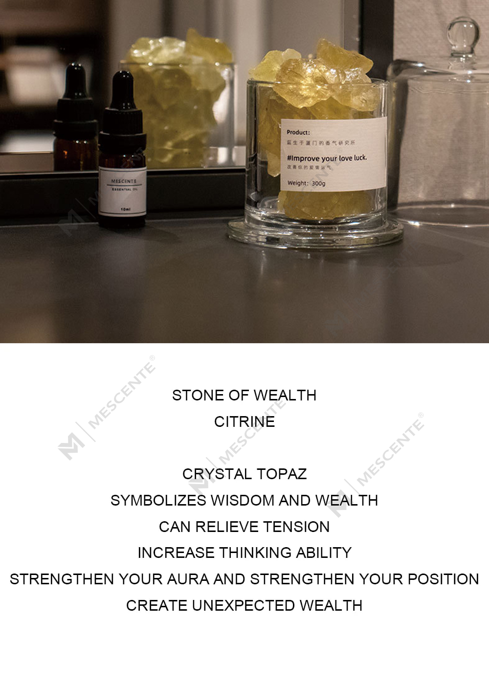 MESCENTE es una empresa totalmente integrada que se especializa en diseño, producción y ventas, enfocada en el diseño de fragancias para el hogar, el cuidado del aire del hogar y la mejora de la purificación del aire. La empresa ha establecido un sistema de gestión de calidad integral y científico, dedicado a proporcionar productos y servicios que incorporan "salud, naturaleza, romance y comodidad"