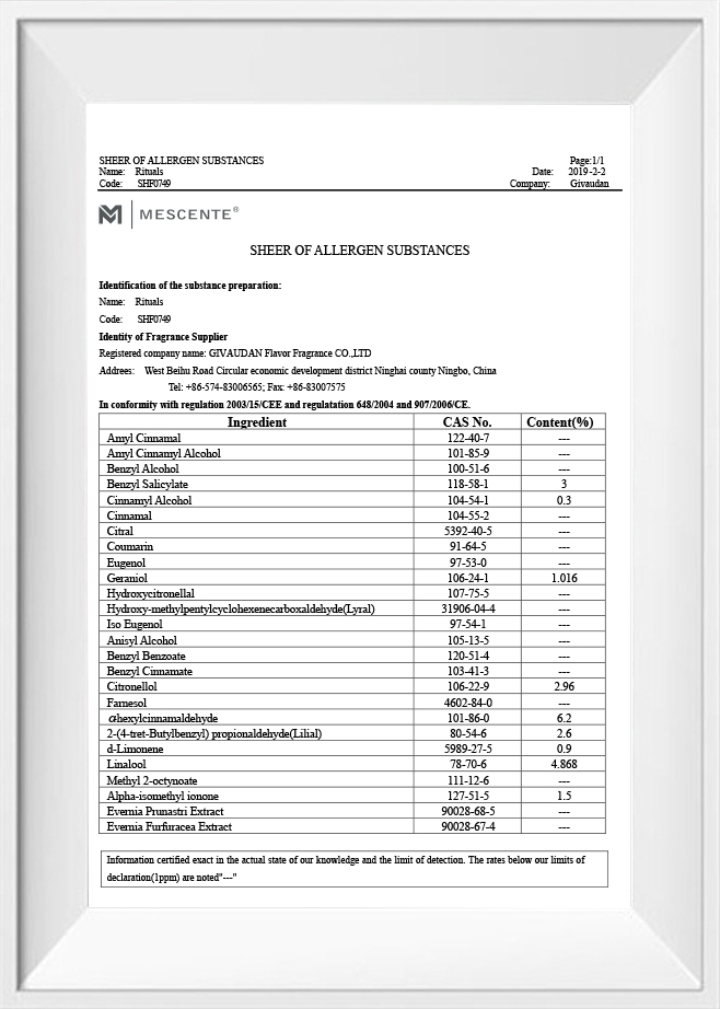 MESCENTE es una empresa totalmente integrada que se especializa en diseño, producción y ventas, enfocada en el diseño de fragancias para el hogar, el cuidado del aire del hogar y la mejora de la purificación del aire. La empresa ha establecido un sistema de gestión de calidad integral y científico, dedicado a proporcionar productos y servicios que incorporan "salud, naturaleza, romance y comodidad"